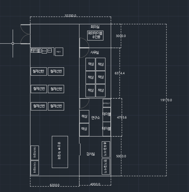 | 요청사항 | 소방 화재감지기 제조업입니다. 사무실과 공장 같이 사용예정이고 별도 공간은 회의실, 사무실, 연구소, 검사실 이렇게 만들 예정입니다. 검사실은 목재 슬라이딩 문으로 하고 나머지 실은 유리 문으로 하면 좋겠습니다. 그리고 각 실 사이 벽은 방화석고로 하되 출입문쪽으로는 통유리가 아닌 방화석고 문에 사람 눈높이 정도의 세로 90cm 정도의 유리가 중간에 쭉 들어갔으면 합니다. 천정 led 엣지등 300*1200 들어가고 납땜 및 검사 진행시 연기가 많이 나기 때문에 송풍 시설도 들어가야 합니다. 송풍은 2개 빼면 될 것 같고 출입문 열고 들어오면 바로 오른쪽에 회사 로고를 넣을 수 있는 가로 3미터 세로 2미터 정도의 가벽이 들어가면 좋겠습니다. 출입문은 필름 붙여서 깔끔하게 했으면 합니다. |