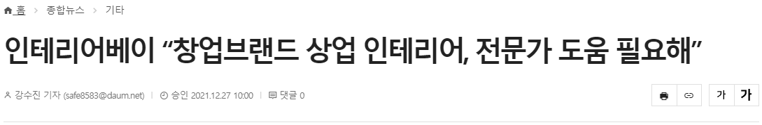 한편, 인테리어베이는 ‘2021 대한민국브랜드평가 고개 만족 브랜드 인테리어 부문’ 1위에 2년연속 선정된 바 있다.