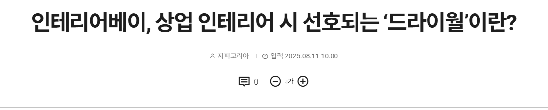 이와 관련해 상업 인테리어 전문 인테리어베이 관계자는 “드라이월은 짧은 공사 기간과 우수한 가변성, 합리적인 비용 등의 장점을 지녀, 상업 인테리어의 효율성과 경쟁력을 높일 수 있는 선택이 된다”며 “다만, 습기에 약해 물 사용이 잦은 주방 등의 공간에는 방수가 되는 제품을 사용해야 하며, 하중에 제한이 있으므로 이를 고려해 필요한 경우 시공 시 적절한 보강이 필요하다”고 설명했다.
