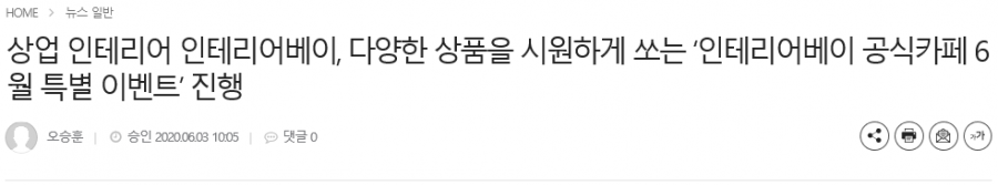 상업 인테리어 전문 '인테리어베이'에서도 본격적인 여름 전, 다양한 상품을 시원하게 쏘는 '인테리어베이 공식카페 6월 특별 이벤트'를 통해 무더운 여름을 대비한다는 계획이다.